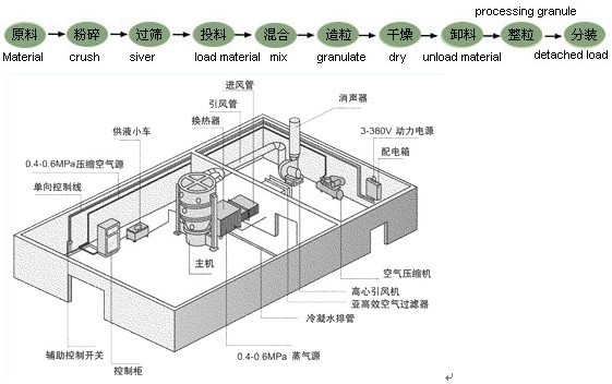 通过粉体造粒、改善流动性,减少粉尘飞扬; 通过粉体造粒,改善其溶解性能; 混合—制粒—干燥—在一机内完成(一步法制粒); 采用抗静电滤料,设备操作安全; 粘结剂雾化器采用多流体喷枪,雾粒均匀,成品合格率大大提高; 设备无死角,装卸料轻便快速、冲洗干净,满足GMP规范。