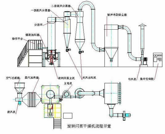 XSG系列旋转闪蒸干燥机特点 由于物料受到离心、剪切、碰撞、摩擦而被微粒化,呈高度分散状态及固气两相间的相对速度较大,强化了传质传热,故该机生产强度高。 干燥气体进入干燥机底部,产生强烈的旋转气流,对器壁上物料产生强烈的冲刷带出作用,消除粘壁现象。 在干燥机底部高温区,热敏性物料不与热表面直接接触,并装有特殊装置,解决了热敏性物料的焦化变色问题。 由于干燥室内周向气速高,物料停留时间短,达到高效、快速、小设备、大生产。 干燥室上部加装陶析环及旋流片,可以控制出口物料的粒度及湿度,以达到不同物料的终水份粒度的要求。 优点:常州市科润药化设备有限公司是国内专业生产旋转闪蒸干燥机的著名厂家。我公司所设计生产的闪蒸干燥机遍及化工、建材、酶制剂、阻燃剂、饲料添加剂等许多行业。具有1、多种加料装置供选择,加料连续稳定,不会产生架桥现象。2、干燥机底部设置特殊的冷却装置,避免了物料在底部高温区产生变质现象;3、特殊的气压密封装置和轴承冷却装置,有效延长传动部分使用寿命;4、特殊的分风装置,降低了设备阻力,同时使塔内风速趋于平衡。 XSG系列旋转闪蒸干燥机工作原理 热空气由入口管以适宜的喷动速度从干燥机底部进入搅拌粉碎干燥室,对物料产生强烈的剪切、吹、旋转作用,于是物料受到离心、剪切、碰撞、摩擦而被微粒化,强化了传质传热。在干燥机底部,较大较湿的颗粒团在搅拌器的作用下被机械破碎,湿含量较低、颗粒度较小的颗粒被旋转气流夹带上升,在上升过程中进一步干燥。由于气固两相作旋转流动,固相惯性大于气相,固气两相间的相对速度较大,强化两相间的传质传热,所以该机生产强度高。 XSG系列旋转闪蒸干燥机应用范围 有机物:阿特拉津(农药杀虫剂)、月桂酸隔、苯甲酸、安息香酸、杀菌丹、草酸钠、醋酸纤维素 等。 染料:蒽醌、黑色氧化铁、靛兰颜料、丁酸、氢氧化钛、硫化锌、各种偶氮染料中间体。 无机物:硼砂、碳酸钙、氢氧化物、硫酸铜、氧化铁、碳酸钡、三氧化锑、各种金属氢氧化物、各种无机盐、合成冰晶石等。 陶瓷:高岭土、三氧化硅、粘土等。 食品:大豆蛋白、胶凝淀粉、酒糟、小麦糖、小麦淀粉等。 ![]() XSG系列旋转闪蒸干燥机技术参数: