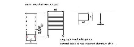 本厂出厂烘车、烘盘尺寸统一,可以互换烘盘尺寸:640×460×45